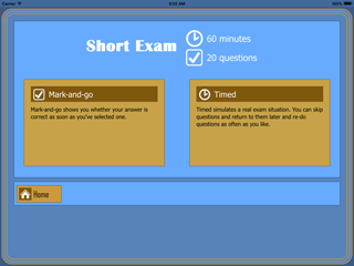 • Timed, which simulates an exam situation where you are able to skip questions and change your answers within the time limit. Your final mark and any incorrect answers are shown at the end.